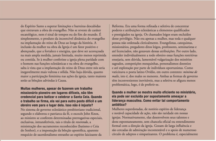 A revista da Editora Ultimato, Edição 329, de Março-Abril de 2011, quatorze anos atrás, publicou, em sua seção “Colunas / Entrevistas”, uma entrevista com o Prof. Dr. Rev. Waldyr Carvalho Luz, então com 94 anos, pessoa conhecida no meio presbiteriano e mesmo evangélico brasileiro. O tópico da entrevista era “A Ordenação Feminina”.