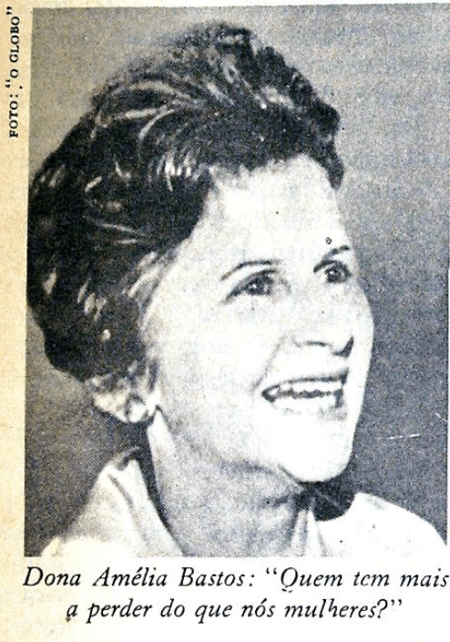 A vela de ignição e a força propulsora do levante das mulheres foi uma minúscula amostra de 45 quilos de energia feminina: Dona Amélia Molina Bastos, do Rio, ex-professora primária, de 59 anos de idade, esposa de um general reformado do corpo médico do Exército.