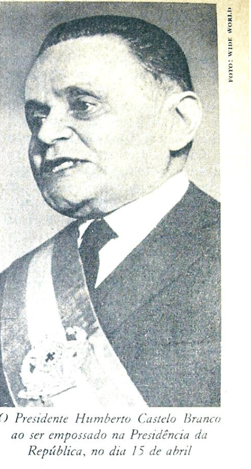 Perfeitamente dentro do período de 30 dias previsto pela Constituição, o Congresso do Brasil elegeu Presidente o General Castelo Branco até ao término dos dois anos que restavam do Governo Goulart. [*] Em vívido contraste com os demagogos baratos que o precederam, Castelo Branco é universalmente reconhecido como honesto, isento da temeridade tão marcante de muitos governantes latino-americanos, e pro- [Continua na página seguinte]